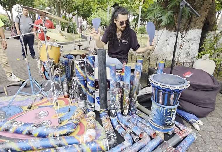 En medio del bullicio del Parque Central de Alajuela, entre vendedores, turistas y transeúntes, una melodía inesperada logra detener a quienes pasan apurados. Es el sonido de tubos de PVC, estañones, tapas de olla y hasta un par de chancletas, convertidos en una batería artesanal que cobra vida en manos de Carlos Arroyo, mejor conocido como Charly.