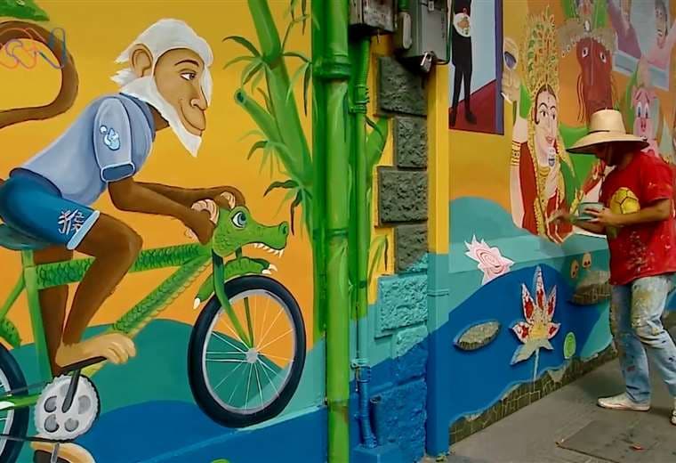 Él elabora murales y afirma que no es solo hacerlo por decoración, sino que debe contar una historia y transmitir un sentimiento (ver video adjunto).