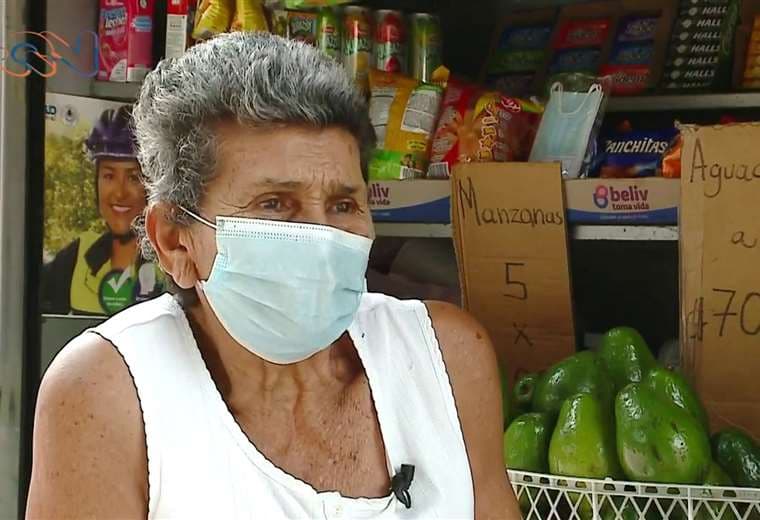 Ella tiene 72 años y trabaja en un puestito que vende frutas, frescos y confites.