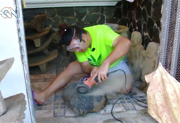Diego Vargas es un joven ateniense, quien se puso una tarea sorprendente: hacer réplicas de arte precolombino como metates, esferas de piedra, entre otros, con materiales como cemento y piedras de río.