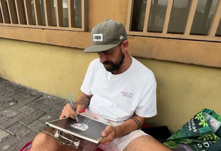 En una de las aceras del centro de San José, entre el bullicio de la ciudad y la indiferencia de muchos, Eduardo Vásquez convierte el concreto en un pequeño taller de arte. A sus 35 años, oriundo de Palmares y viviendo en condición de calle desde hace tres meses, encuentra en el dibujo un refugio y una esperanza.