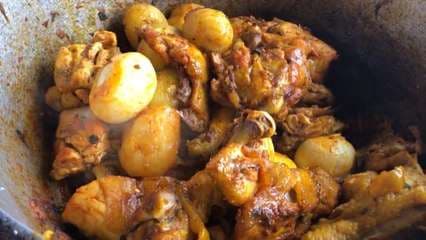 Cuando el pollo está en su punto, añada los huevos y las papas. Mantenga al fuego de 5 a 10 minutos.