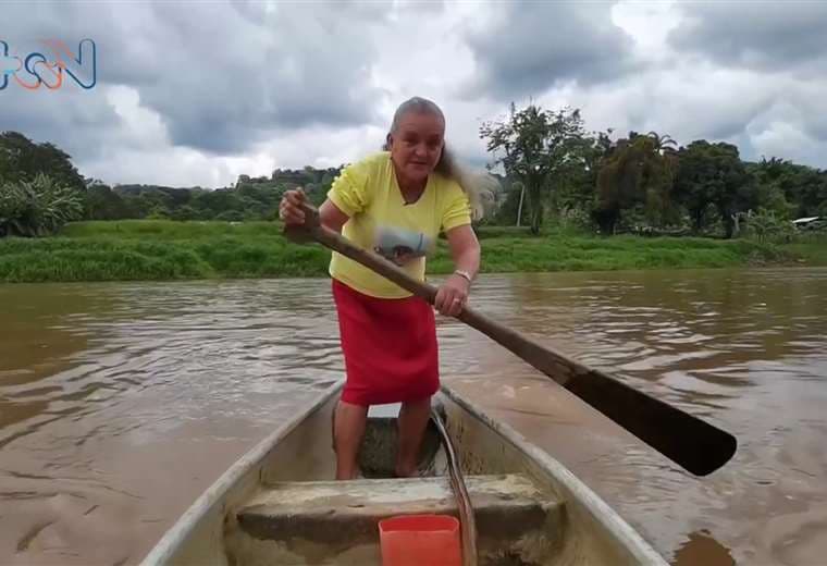 Esta señora de 75 años cruza el río San Carlos a puro remo