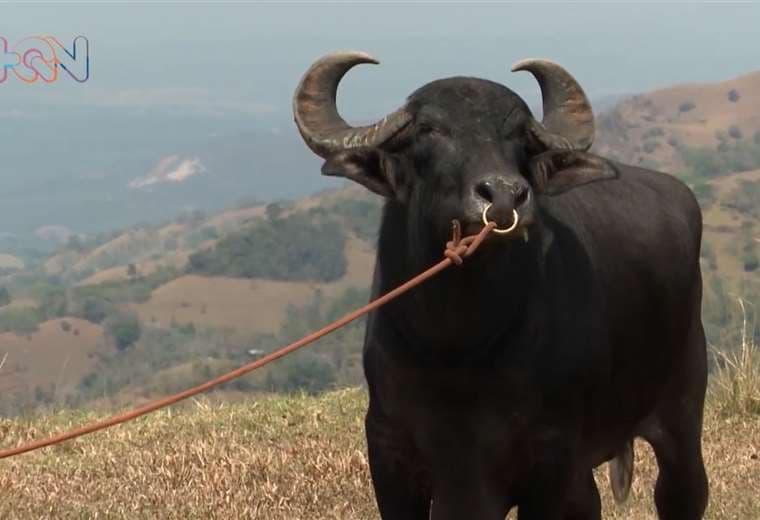 César es un búfalo de 16 años. Desde que nació, vive con la familia Mesén en la Finca Florya, ubicada en Mercedes Norte de Puriscal.