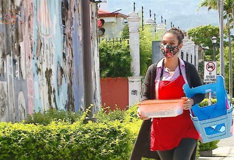 Joven vende empanadas hechas por su mamá en la Asamblea Legislativa