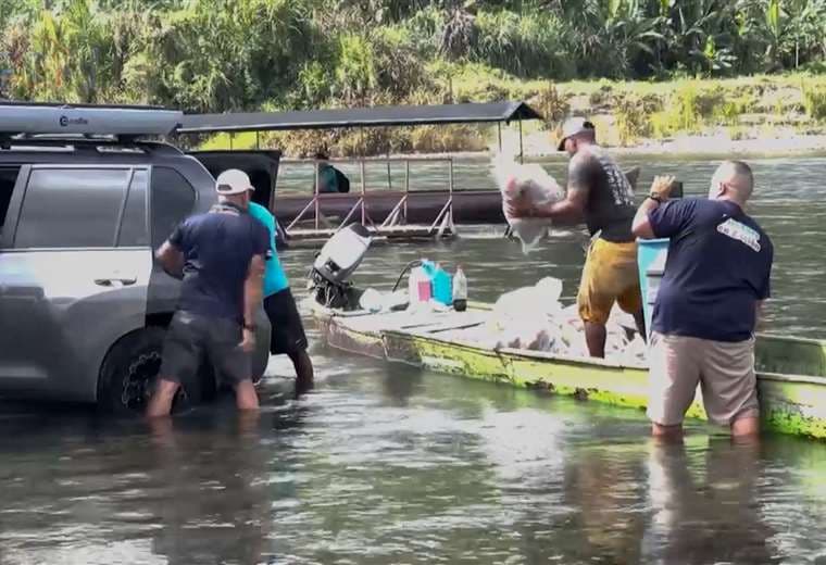 Con el propósito de proporcionar ayuda alimentaria a las mujeres del territorio indígena Bribri, estos voluntarios se preparan para una jornada de entrega y solidaridad.
