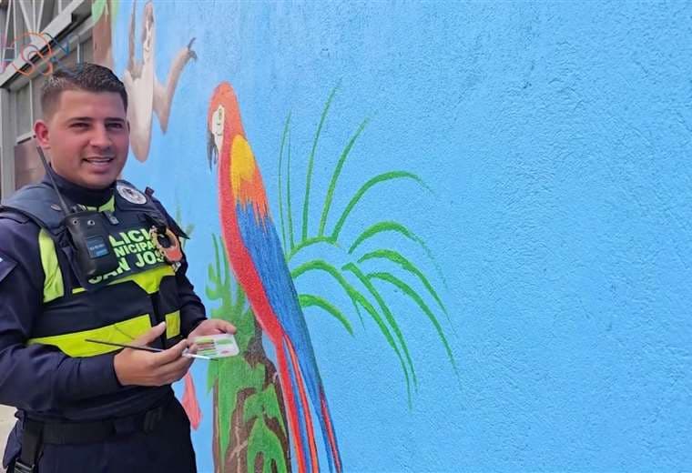 Bryan Loáiciga, oficial de la Policía Municipal de San José, ha encontrado una manera única de servir a la comunidad: a través del arte.