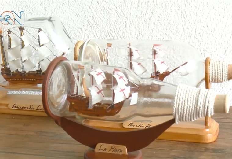 A sus 71 años, Virgilio Chacón confecciona modelos de barcos históricos que construye en el interior de botellas de vidrio.