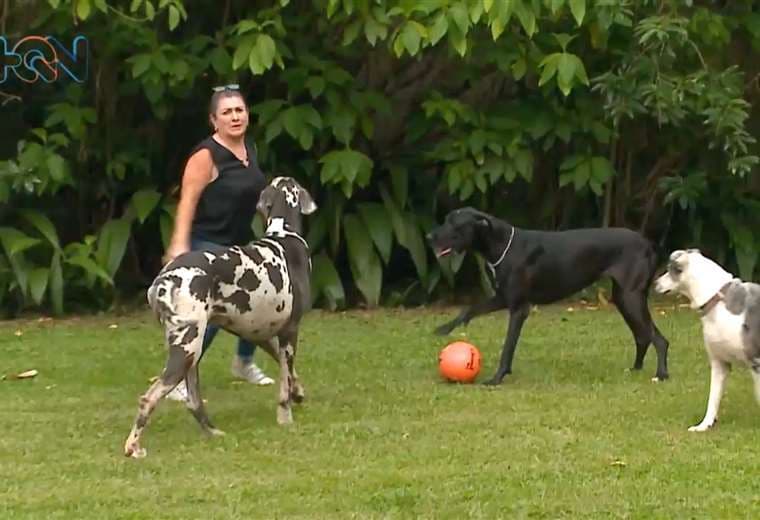 Marta Maroto es una vecina de Alajuela, quien decidió tener en su propiedad perros de la raza Gran Danés, que llegan a medir hasta 81 centímetros de altura y a pesar entre 45 y 59 kilos, de ahí que son considerados "gigantes".