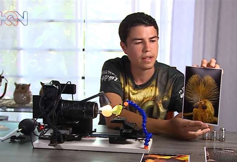 Es 100% empírico, comenzó tomando fotos con celulares viejos y lupas; poco a poco, se fue profesionalizando hasta crear su propio montaje del equipo en la sala de la casa.