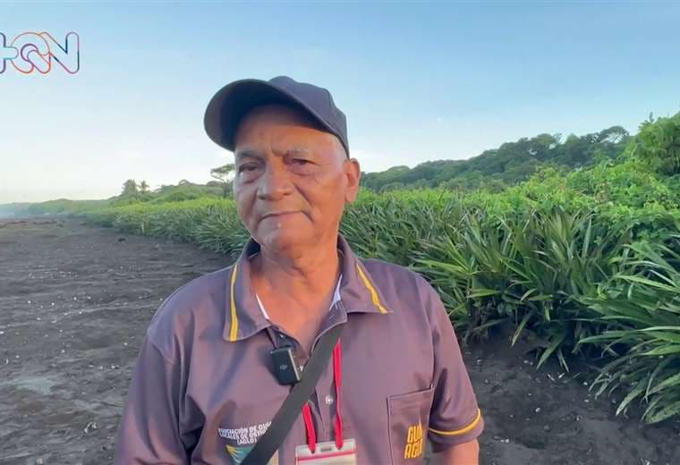Don Gilberth es guía turístico y lleva a los turistas a conocer el proceso de desove y nacimiento de las tortugas.