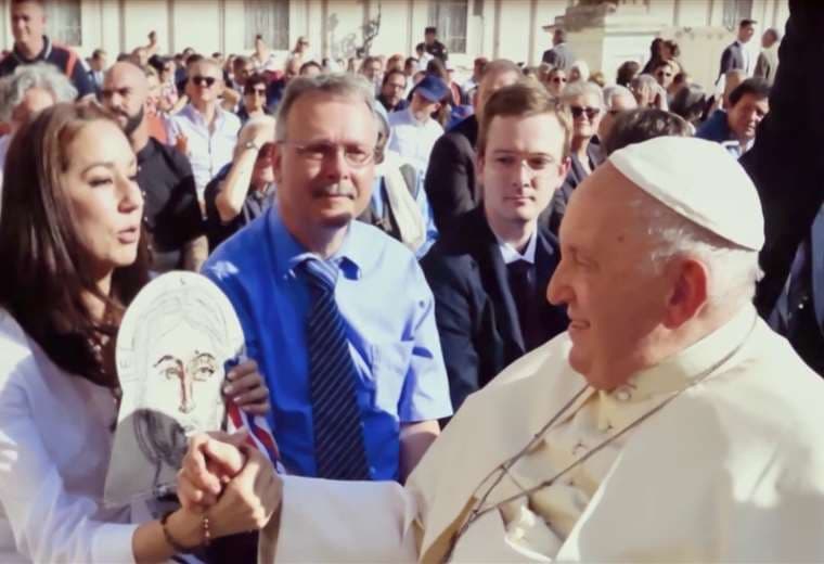 Durante cada encuentro, ella le dio al Papa obras de su autoría, creadas con devoción y técnica minuciosa.