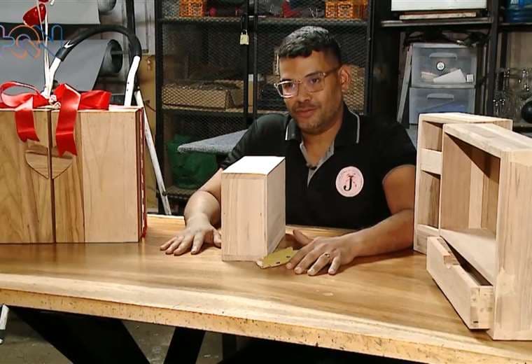 Para este 14 de febrero ofrece una caja de madera que tiene dos funciones: guardar cosméticos y joyería y, a la vez, fungir como un recipiente de chocolates. Se podría decir que esta creación de José es un regalo con doble propósito.