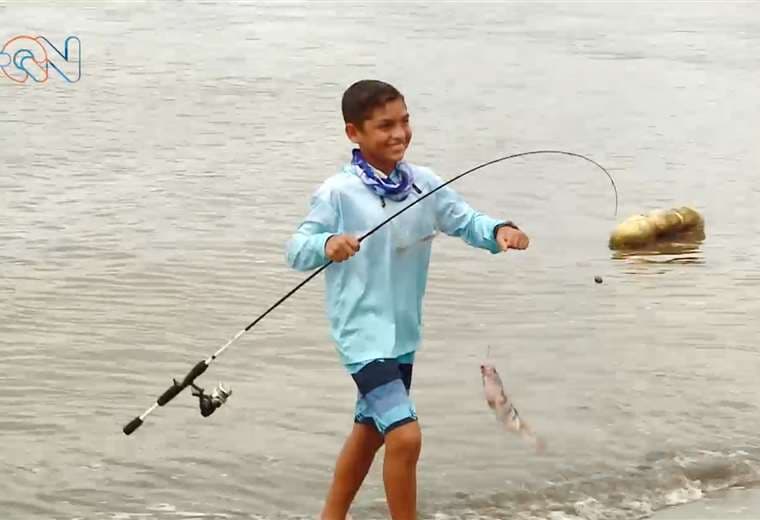 Tiene solo 10 años, pero John Arguedas pretende ser de los mejores pescadores del país.