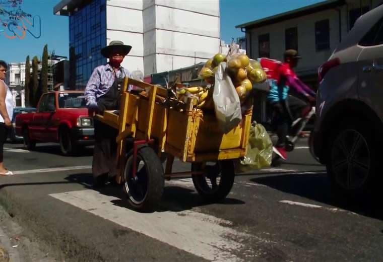 Don Romualdo Hernández tiene 82 años y es común verlo, de lunes a viernes, en la Avenida Central, entre el Mercado Borbón y Plaza González Víquez.