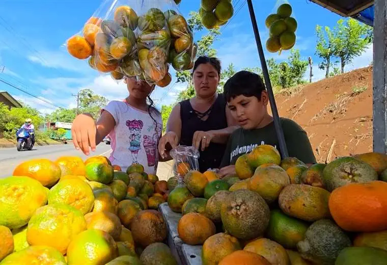 Una madre y sus hijos levantan su futuro vendiendo naranjas a la orilla de la carretera