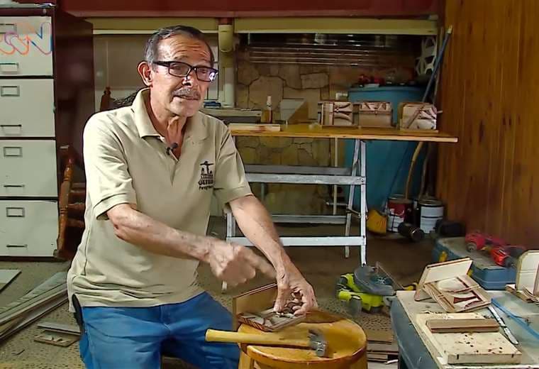 Carlos tiene un enorme talento para crear artesanías, por eso decidió empezar a hacer artículos decorativos para ayudar a reconstruir esta iglesia.