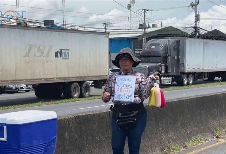 Naylin Valverde, de 41 años, es una figura emblemática en el peaje de Alajuela, donde ha ejercido su labor durante 21 años. Comenzó vendiendo tártaras, luego plátanos, y ahora ha innovado con una oferta fresca y necesaria para aliviar el calor de aquellos atrapados en la presa: refrescos naturales.