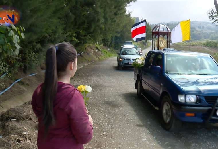 También, en La Unión de Cartago, una imagen de la Virgen visita casa por casa para bendecir los hogares; eso sí, los vecinos la desinfectan antes de pasarla a otra vivienda, utilizan mascarilla y guantes al relacionarse.