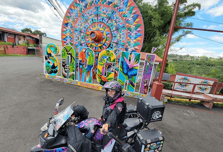 Motociclista colombiana hace parada en Costa Rica durante su viaje por América