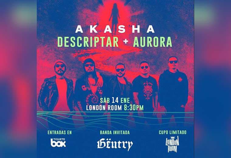 Las bandas costarricenses Akasha y Gëntry se unen para dar un concierto este sábado. La cita será a las 8:30 p. m. en London Room.