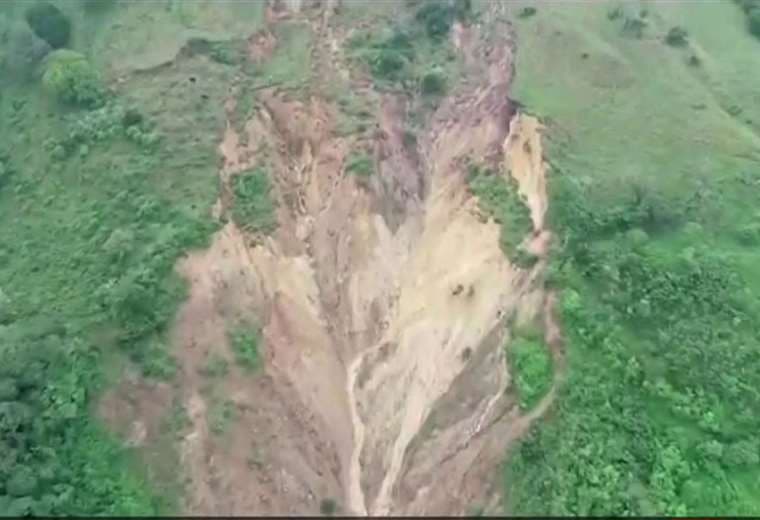"La fractura en el borde de la corona tiene un desplazamiento horizontal de 40 centímetros por una caída de 40, eso va manifestando que el bloque va muy acelerado, principalmente a raíz de las fuertes lluvias que se han dado y el colapso del sistema de alcantarillado pluvial", explicó Julio Madrigal, funcionario de la CNE.