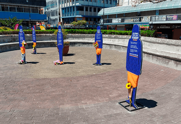 Las figuras que representan a Luany, Casandra, Yendry, Marisol, Fernanda, Grettel y otras víctimas de femicidio fueron colocadas en el Parque Central de San José para generar conciencia en la población.