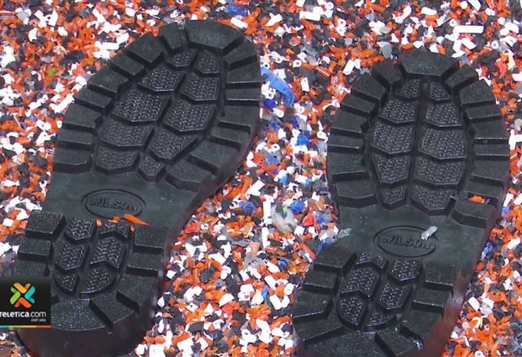 Unas 90.000 bolsas de suero que se utilizaron en el Hospital México se convierten ahora en suelas de zapatos para niños de escuela.