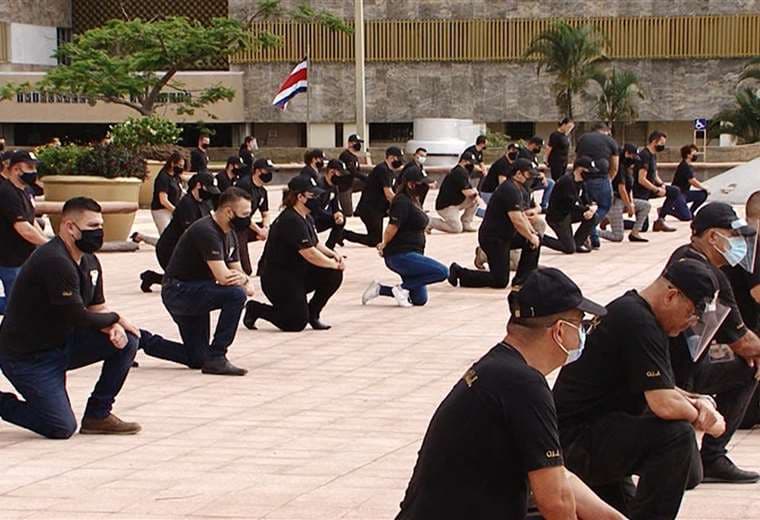 Imágenes como esta, en la Plaza de la Justicia, se repitieron en otras partes del país. El OIJ compartió en sus redes sociales fotos en Alajuela y Garabito de Puntarenas.