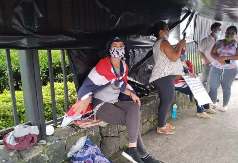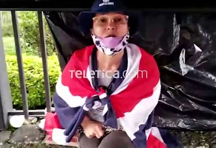 Una agricultura de la zona de Colonia Naranjeña en Guatuso de Alajuela tiene más de un día de estar encadenada a una de las rejas perimetrales de Casa Presidencial para pedirle al Gobierno que le ayude a no perder su finca.