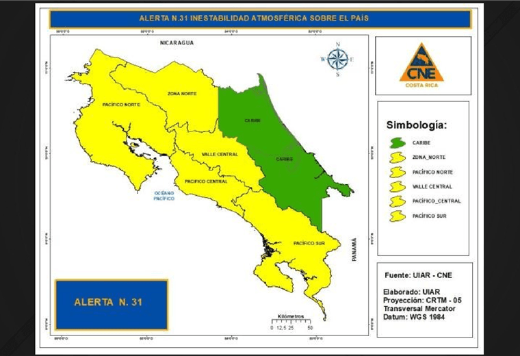 La Comisión Nacional de Emergencias (CNE) extendió la alerta amarilla al Valle Central.