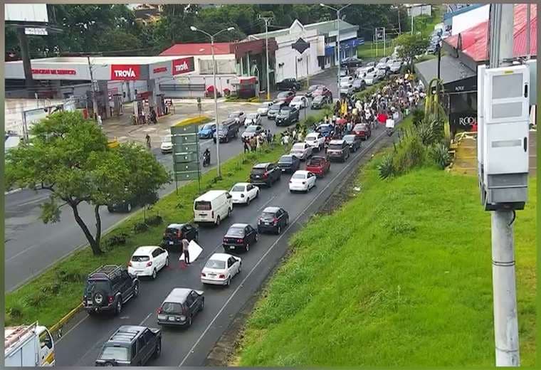 Minutos después de las 2:30 de la tarde, los manifestantes provocaron un caos vial en esa importante ruta. Pancartas, banderas de Costa Rica y tambores acompañaron el grito de “no a la pesca de arrastre”.