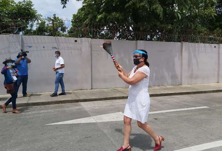 Guiselle Cruz, ministra de Educación, recibió la llama de la antorcha en el puesto fronterizo de Peñas Blancas.