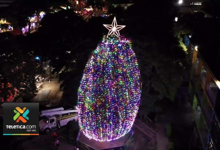 La noche de este jueves se iluminó el árbol de 10 metros de altura y una enorme estrella en su copa.