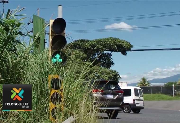 En el cruce del Real Cariari, que va hacia Belén, ya casi no se ven las señales de tránsito por lo crecido que está el zacate.