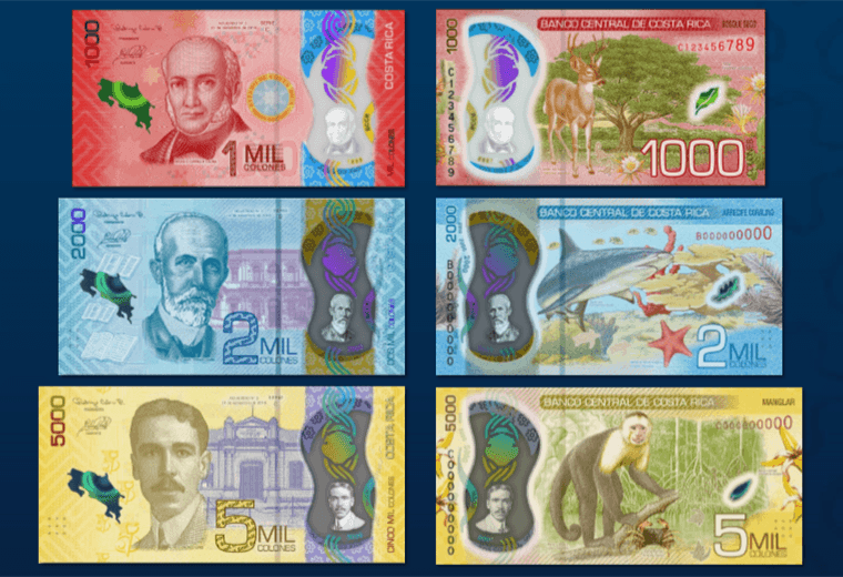 Al igual que sucedió con las denominaciones de ₡20.000 y ₡50.000, semanas atrás, los actuales billetes serán reemplazados por otros de sustrato de polímero (similar al plástico), que ya circulan desde finales de 2020.