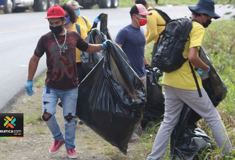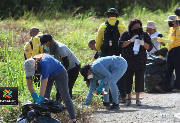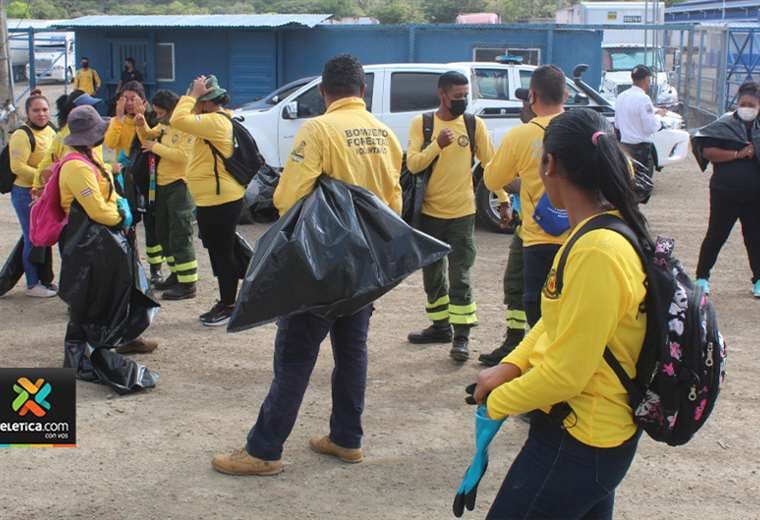 Al menos 40 bomberos forestales y voluntarios realizaron una campaña de limpieza y recolección de basura en las calles de La Cruz en Guanacaste.
