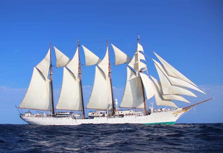 El barco de nombre Juan Sebastián De Elcano se encuentra atracado en la terminal Hernán Garrón, contiguo al Parque Vargas, en Puerto Limón.