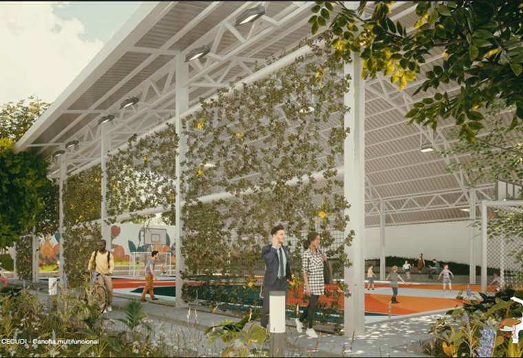 El área contempla biojardines para el tratamiento de aguas, diques, lagunas para la purificación del río, skatepark, accesos universales, salón multiusos y el puente que hace la conexión por encima del río de los diferentes espacios públicos del cantón de Mora.
