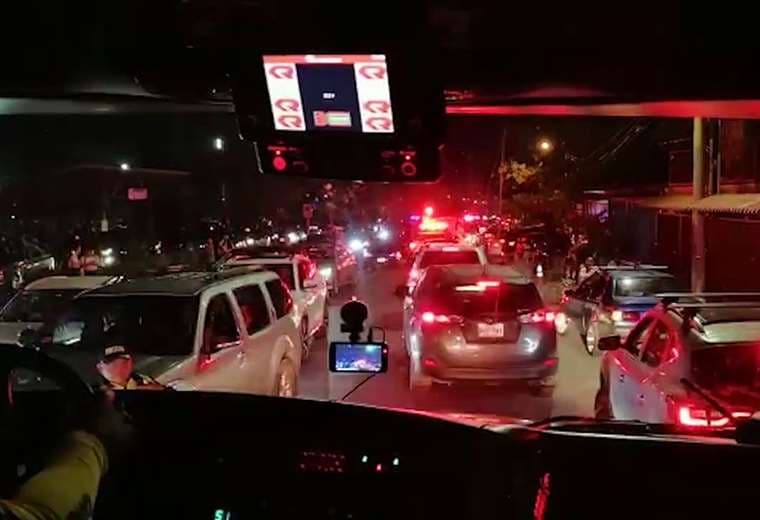 En un video captado desde el camión de Bomberos, se aprecia cómo la Policía Municipal de Alajuela y la Fuerza Pública intentaron colaborar para agilizar el paso, pero no tuvieron éxito debido al ancho de la vía.