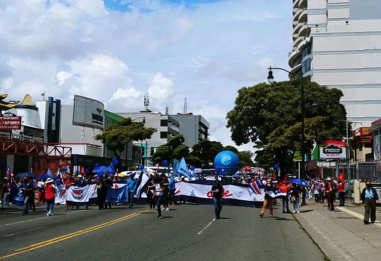 “¡Qué el rico pague como rico y el pobre como pobre!”, gritan en coro los manifestantes, la mañana de este martes, en las calles de San José.