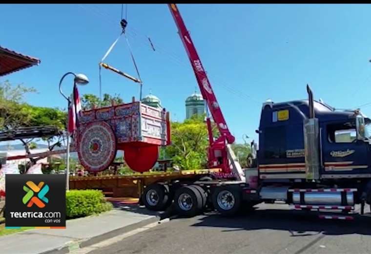 Grúas y equipo especial fueron utilizados para llevar la carreta del parque de la localidad, donde se encontraba desde hace 17 años, hasta una fábrica en Sarchí Sur.