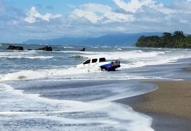 Carro del Ministerio de Salud se pierde entre las olas durante una gira
