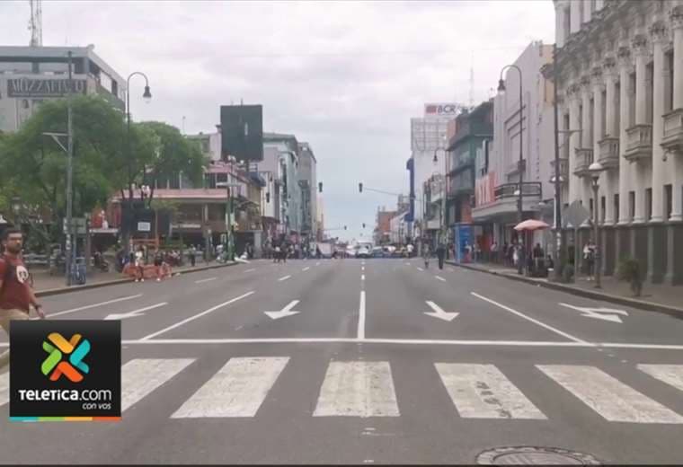 Aun a las 12:30 p. m. la avenida segunda estaba cerrada, la Policía Municipal mantenía el cierre porque había una celebración en el Teatro Nacional, el aniversario de San José como ciudad capital.