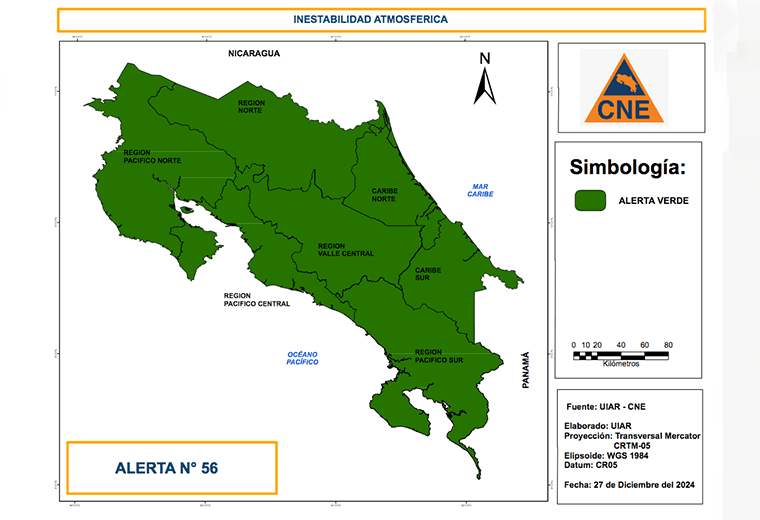 La Comisión Nacional de Emergencias (CNE) declaró alerta verde en todo el territorio nacional debido al aumento de lluvias estimado para los próximos días.
