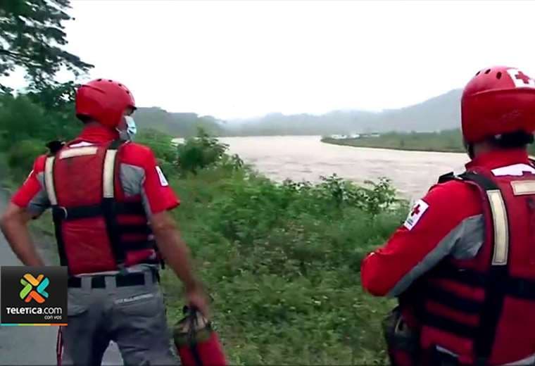 Cruzrojistas y miembros del comité local de emergencias vigilan de manera constante la crecida del río Parrita.
