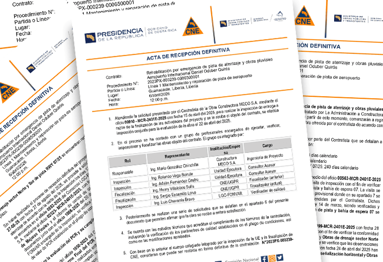 Es precisamente en este último punto que adquiere relevancia el acta de recepción revelada el 8 de abril anterior por el sitio de noticias El Mundo CR, al que luego Teletica.com tuvo acceso.