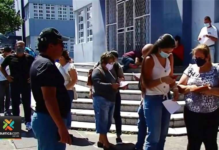 Decenas de personas hacen fila de hasta tres horas en las afueras del Ministerio de Salud, en San José, para corregir errores en el código QR.
