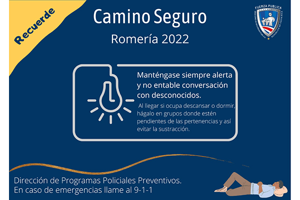 El pasado fin de semana se dio a conocer que un grupo de romeros había sido víctima de asaltos durante la peregrinación, por eso el Ministerio de Seguridad Pública (MSP) emitió una serie de consejos este lunes para evitar que se repitan más casos como este.