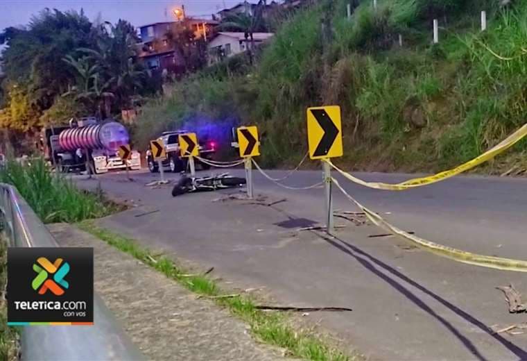 Al parecer, la víctima impactó contra una de las señales y cayó a las llantas de un tráiler.
